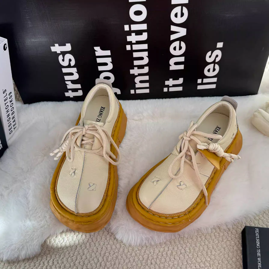 Top Leather Retro Thick Soft Sole Casual Lace-Up Flat Shoes