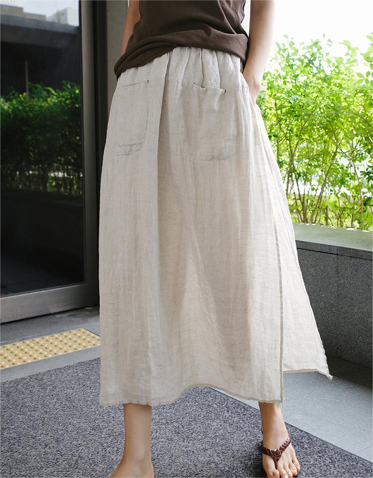 Women Slit Cotton Linen Wide Leg Cropped Pants